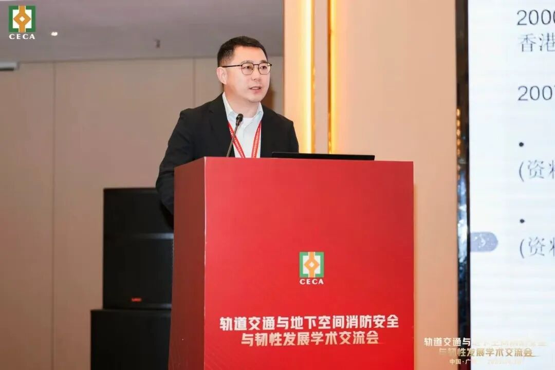 王暉指出,隨著城市軌道交通網絡日益密集,消防安全與韌性發展面臨嚴峻挑戰。他結合實踐,指出當前消防標準存在滯后性與不統一等問題,并分享了廣州地鐵在特殊消防設計、車輛基地物業開發及隧道智能運維平臺建設方面的經驗,呼吁行業共同努力探索更科學高效的解決方案,推動標準完善與行業高質量發展,構筑堅固可靠的城市地下安全防線。